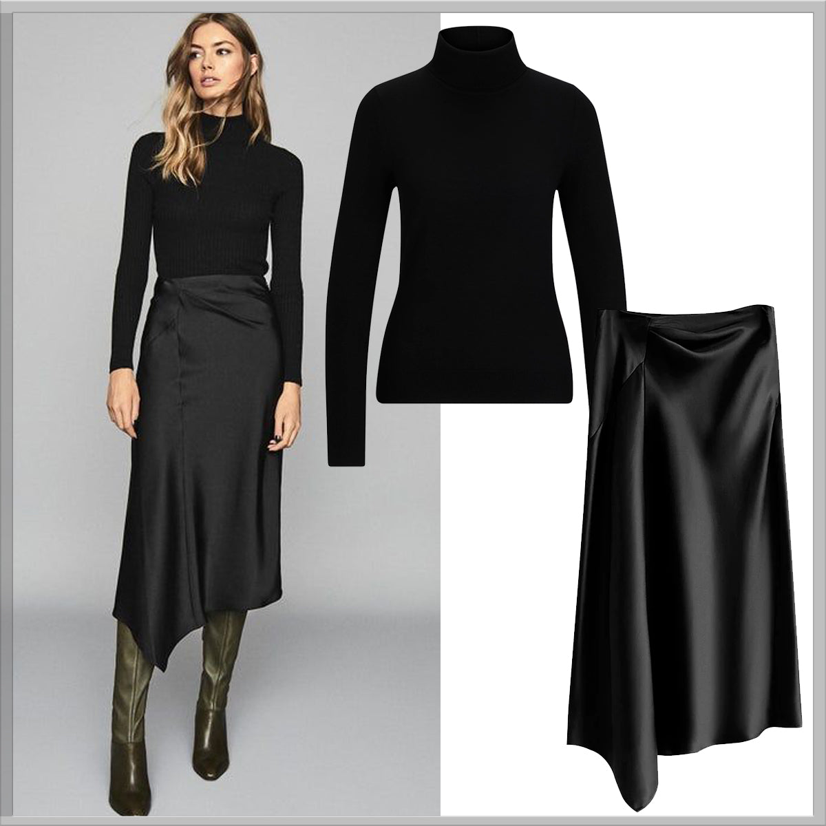 Για εσάς που αγαπάτε το κλασικό στιλ. Για μια all black εμφάνιση, συνδυάστε ένα μαύρο τοπ με μαύρη σατέν φούστα. Προσθέστε αξεσουάρ σε ασημί ή χρυσούς τόνους και γοητεύστε. Δεξιόστροφα από πάνω: τοπ ELODIE, φούστα PHILIP LANG. Αποκτήστε όλο το σετ με έκπτωση 30%