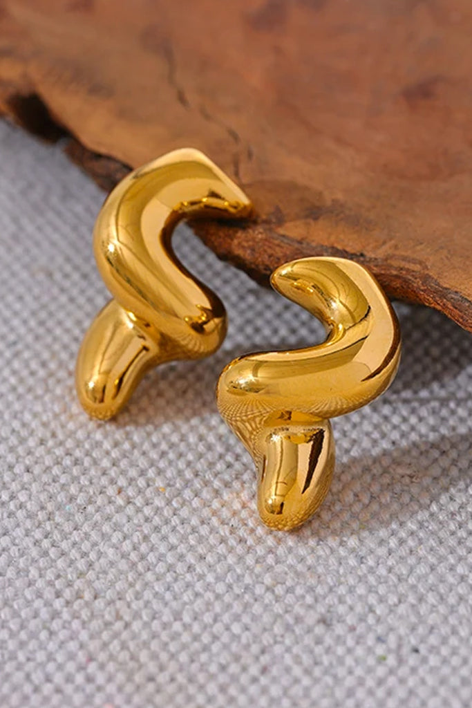 Earrings with an elaborate design. The Swirly earrings are made of steel and are respectively gold / silver plated, fit with a butterfly clasp and are for pierced ears only.